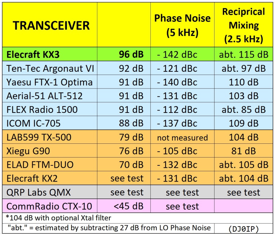 Note: 1 or 2 dB difference in DR3 is not decernable. Indeed, manufacturing tolerances can result in identical transceivers being 1 or 2 dB different.